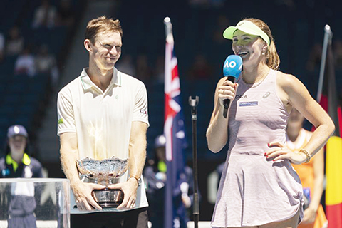 【中央社墨爾本30日綜合外電報導】澳洲地主選手蓋德基和皮爾斯今天以4比6、6比3、10比8擊敗法國組合姆拉德諾維奇和吉納爾,成為37年來首對成功衛冕澳洲網球公開賽混合雙打冠軍的搭檔。