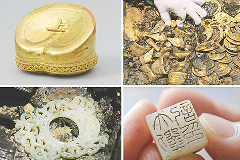 隨著主槨室開啟,震撼接踵而至。堆積如山的五銖錢,總重超過十噸;璀璨奪目的馬蹄金、麟趾金、板金等,總重超過一百一十五公斤;符合《周禮》中記載的「諸侯軒懸」的三堵懸樂;帶有「昌邑二年」「昌邑九年」「昌邑十一年」年款的青銅器……它們不僅是西漢強盛國力的縮影,也是漢代經濟社會制度的實物見證。