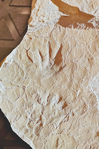 據介紹,此次發現的化石實物為兩枚保存在同一塊岩板上的足跡印痕,發現于北京市門頭溝區龍泉鎮九龍路附近的公路邊坡。這兩枚足跡構成了一組關聯的前-後足跡組合,經研究判斷,它們很可能屬於同一動物在連續運動過程中留下的。其中有一枚印痕保存較為完好,被識別為一隻小動物的左前足跡,呈現出清晰的四趾形態,整體呈扇形。掌印全長僅一點五厘米、寬一點三厘米,四個趾印細長、遠端尖銳。