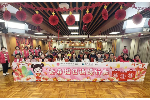 婦聯總會昨日在婦聯樂頤長者日間中心、樂融家庭綜合服務中心、北區家庭服務中心、綜合服務大樓地下舉行「二零二六新春福包送暖行動」。婦聯監事長容永恩,副會長周霓、盧潔兒、何凱玲、黃潔貞,副理事長羅萍、歐陽月勝、何嘉欣,副監事長蔡彩蓮,向在場長者派送福包,送上新年祝福。