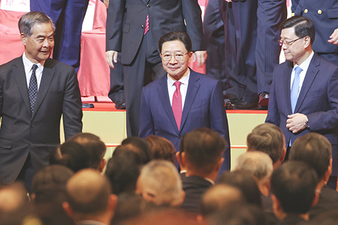 他指出,這一年香港經濟發展持續向好。本地生產總值增長百分之三點五;港股IPO融資額全球第一;北部都會區全面提速;香港民生不斷改善;家庭收入中位數持續上升;社會保持和諧穩定。東方之珠正煥發出更加璀璨奪目的光彩,一年來的發展成就得益於一國兩制的方針。
