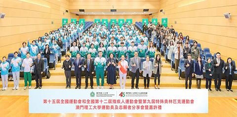 【特訊】為喜迎澳門理工大學45周年校慶,並慶祝第十五屆全國運動會及全國第十二屆殘疾人運動會暨第九屆特殊奧林匹克運動會成功舉行,澳理大日前舉辦全運會運動員及志願者分享會暨嘉許禮,以“傳承全運精神,點燃運動激情”為主題,凝聚澳理大師生、運動員和志願者,分享參與十五運會及殘特奧會的經驗和喜悅,同時感謝一眾師生教練員、運動員及志願者的積極拼搏、熱誠奉獻,氣氛喜悅動人。
