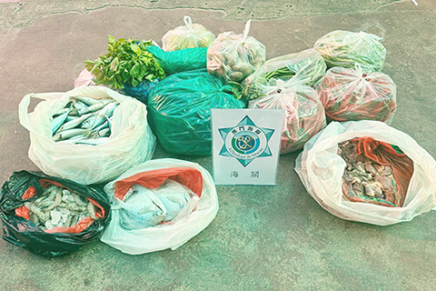 【專訪】本澳海關聯同市政署日前到關閘口岸周邊一帶展開聯合巡查行動,截獲兩宗不法販運個案,合共檢獲未經檢疫海鮮類、肉類、蔬菜類及根莖類食材逾六十二公斤,三人違法被查。