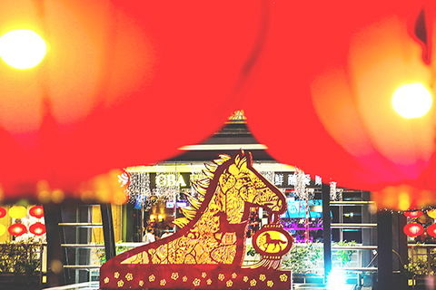 農曆馬年越來越近了,台灣台北信義商圈佈置的裝置藝術,以「馬」來配搭大紅燈籠及吉祥圖案賀詞,充滿濃郁的過年氣氛,讓民眾喜氣洋洋迎接「馬到金來」的幸福年。(香港中通社圖片)
