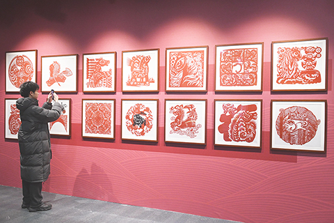 ◎ 二月九日,重慶中國三峽博物館新春文化系列展覽──「福」馬上來亮相。展覽展出「馬」相關的二百二十七件(套)館藏文物,涵蓋書畫、青銅器、陶器、拓片、織綉、剪紙、年畫、玉器等。該展覽於本月十日正式開展,免費對公眾開放。圖為與「馬」相關的剪紙作品吸引探訪記者駐足欣賞、拍照。(中新社記者周毅 攝)