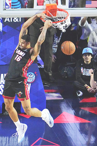 【中央社洛杉磯14日綜合外電報道】NBA全明星賽周末好戲之一的灌籃大賽,今年4名參賽者全是新人,結果邁阿密熱火前鋒莊遜(Keshad Johnson)榮膺新任灌籃王。