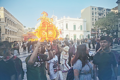 隨著大批旅客陸續抵澳,昨日下午中區旅遊景點人流顯著增加,大三巴人頭湧湧。有旅客認為澳門新年氛圍濃厚,到處都有馬年新春裝飾,而澳門的葡式建築和中式廟宇各有特色且精緻,交通便利,路環亦可讓小朋友接觸大自然增長見識,她認為澳門適合親子遊。◇
