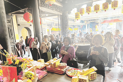 位居去年台灣各觀光遊憩區人數第一名的彰化「鹿港老街及周邊地區」,果然名不虛傳,大年初四擠滿觀光人潮,可以恐怖來形容,走在街上形同被推著走,估計到春節連假結束前,都很難改變。遊客到鹿港一定會去天后宮拜拜祈求未來的一年可以身體健康,事業順心。鹿港天后宮,又稱鹿港媽祖宮、鹿港湄洲媽、舊祖宮,前身為鹿港天妃廟,是台灣彰化縣鹿港鎮的信仰中心,是最早唯一奉祀湄洲天后宮天上聖母開基聖母神尊的廟宇,此尊湄洲島天上聖母(開基二媽)是清代福建水師提督施琅將軍迎奉來台,也是世界僅存的湄洲開基天上聖母神尊。(香港中通社圖片)