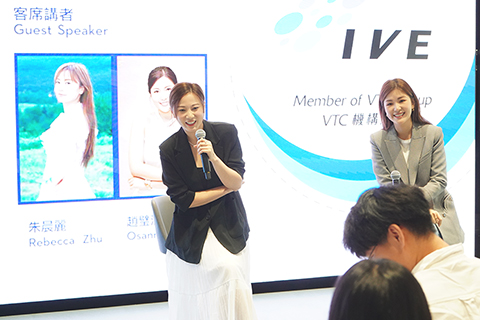 無綫選美冠軍朱晨麗與藝人趙璧渝(Osanna),早前到香港專業教育學院 IVE(觀塘),為「BUSINESS INSPIRING INNOVATION-香港藝人管理的挑戰」擔任客席講師。在歷時兩小時的講座,與數十位莘莘學子分享演藝生涯,也談及初入行時種種困難及挑戰。首次做客席講師的朱晨麗和趙璧渝,面對學生們的積極發問皆盡力解答,更與學生打成一遍,足見兩人不止演戲出色,亦擅長與年輕人相處。