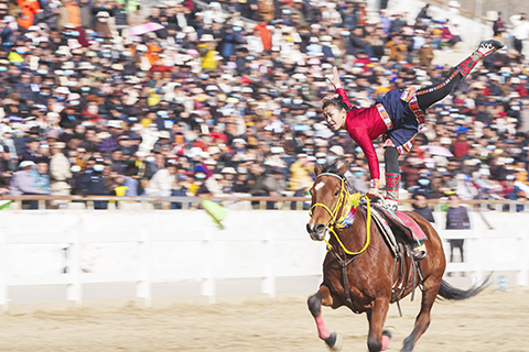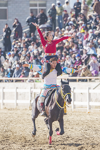 西藏:馬年新春 馬上過年 2026-02-23 03:30:00 二月二十日是馬年大年初四,藏曆火馬年大年初三,拉薩市北郊賽馬場舉行了民族傳統馬術表演暨民族賽馬活動。馬術隊員策馬揚鞭,一展技藝,以精彩的馬術表演獻禮馬年新春。(新華社記者 丁增尼達 攝) ◎ 二月二十日,馬術隊員在表演馬上技巧。 ;