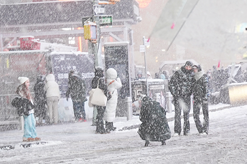 ◎ 二月二十二日,暴風雪襲擊美國紐約。當地宣佈進入緊急狀態。圖為當日,在美國紐約,人們在大雪中出行。(新華社記者 張鳳國 攝)