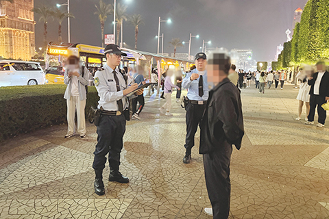 【特訊】在警察總局統籌下,治安警察局於本月二十三日持續進行「冬防行動二0二六」,以維護本澳良好治安環境。治安警察局轄下澳門警務廳、海島警務廳、情報廳及交通廳共派出四十一名人員,分別巡查澳門各區多間按摩場所、卡拉OK、酒吧及餐廳,同時在路氹城金光大道一帶加強截查可疑人士,並進行不定點查車行動,以預防及打擊各種不法行為和犯罪活動。此外,在離島區一帶的工業及商業大廈,向大廈管理員宣傳防罪滅罪資訊,以提醒在新春期間做好防泣措施。