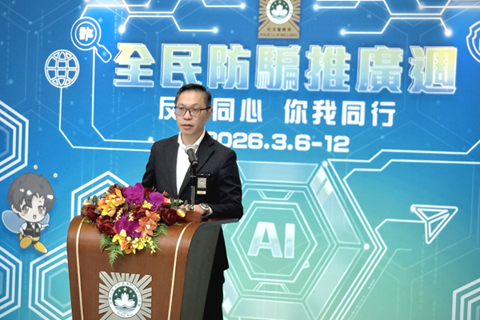 薛仲明局長致辭時表示,司警局近年積極構建「預防、挽回、打擊」三者結合的防治模式,全面推動線上線下、接觸與非接觸並舉的防騙宣傳;同時強化與銀行、電訊業界的訊息互通,推行多項針對性的預防與反制措施;並加大打擊力度,深化境外執法協作,全力遏止詐騙蔓延。