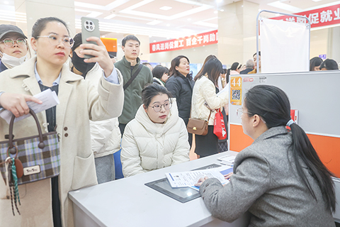 ◎ 三月七日,「三八」國際婦女節前夕,二0二六年江西省女性專場招聘會暨南昌市「春風行動」就業援助女性專場招聘會在江西南昌舉行,本次招聘會提供兩千餘個適配女性的就業崗位,不少求職者來到現場尋找就業機會。圖為求職者在與企業招聘人員交流。(中新社記者 劉力鑫 攝)
