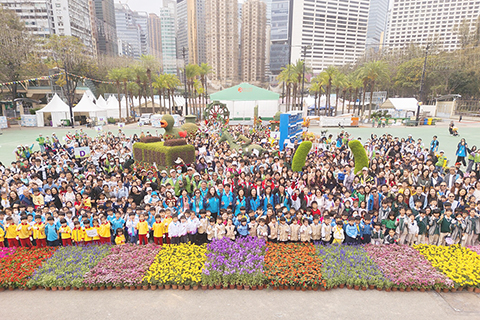 ◎ 三月七日,香港超過一千一百名來自三十八間學校的學生,於維多利亞公園參與「賽馬會學童鑲嵌花壇」活動,以香港花卉展覽大型花壇「港島花徑」為藍本,親身體驗鑲嵌花壇的樂趣。(香港中通社圖片)