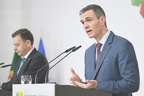 西班牙首相:美以對伊軍事行動是「極其嚴重的錯誤」 2026-03-08 03:30:00 ◎ 西班牙首相桑切斯三月六日表示,美國和以色列對伊朗的軍事行動是「極其嚴重的錯誤」。他同時強調,西班牙向塞浦路斯派遣軍艦僅為履行對歐盟伙伴的防禦和援助義務。圖為當日,在西班牙韋爾瓦省拉拉比達,西班牙首相佩德羅·桑切斯(右)在西班牙-葡萄牙峰會新聞發佈會上講話。(新華社發西班牙首相府供圖)