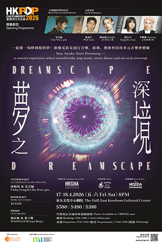 由《第43屆香港電影金像獎》「最佳原創電影音樂」得獎者兼二胡演奏家朱芸編與本地音樂人馮穎琪共同策劃,匯聚電影及流行音樂、街舞及藝術科技編織出由三個章節組成的音樂盛筵,將呈現重新編曲的香港經典電影配樂,兩晚分別由林奕匡和陳泳伽@COLLAR(四月十七日)及鄧小巧和李駿傑@MIRROR(四月十八日)擔任演出嘉賓,與一眾樂團和合唱團成員演繹不同年代的流行歌曲,以及由年輕街舞舞者及新生代實力音樂人共同創作,以跨界合作的創意火花為文化節揭幕。《夢之深境》將於四月十七及十八日在東九文化中心舉行,門票將於三月十三日起在城市售票網(www.urbtix.hk)開售,票價分為380元、480元及580元。電話購票請致電31661288;或使用流動購票應用程式URBTIX。