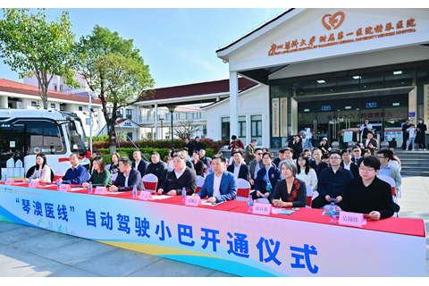 3月13日,「琴澳醫線」自動駕駛小巴開通儀式在廣醫一院橫琴醫院舉行。橫琴粵澳深度合作區執委會副主任張國基,合作區民生事務局副局長蘇凱慈、城市規劃和建設局副局長汪雲,廣醫一院橫琴醫院黨委書記張挪富等嘉賓,以及琴澳醫療領域代表、琴澳居民代表出席開通儀式,共同見證這一重要時刻。