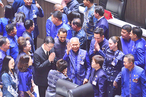 梭蓬•乍蘭當選泰國新一屆國會下議院議長 2026-03-16 03:30:00 ◎ 三月十五日,泰國自豪泰黨議員梭蓬.乍蘭(中)在曼谷國會下議院慶祝當選。 泰國自豪泰黨議員梭蓬.乍蘭當日當選泰國新一屆國會下議院議長。新華社發(拉亨 攝)