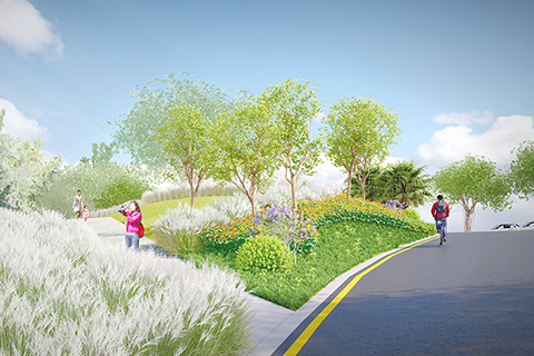 大潭山郊野公園內部份植物已種植多年,植栽單一且逐漸老化衰退,市政署將重整及優化大潭山郊野公園近天文台斜路的部份綠化帶,選取合適植物,如金英花、狼尾草、黃鳥蕉和黃花夾竹桃等,並配合高低坡道營造景觀;同時亦種植誘蝶植物,如馬利筋、醉魚草及可愛花等,創造適合蝴蝶棲息、覓食和繁殖的生活空間及友善的生態環境,吸引各類昆蟲棲息,繼而為雀鳥及其他山林動物提供食物來源,形成穩定的生態鏈,讓城市綠地成為支持生物多樣性的重要據點。為善用綠化資源,市政署在重整優化前亦會審視及回收生長條件良好的植物,並移植到合適區域繼續栽種。