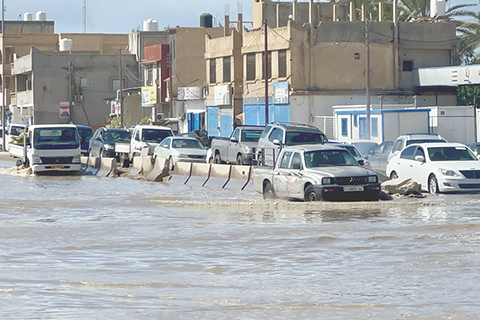 利比亞多地遭遇強降雨 2026-03-18 03:30:00 ◎ 利比亞多地自三月十六日晚間起遭遇強降雨。圖為十七日,車輛行進在利比亞首都的黎波里的一條積水道路上(手機照片)。(新華社發 哈澤姆.圖爾基亞 攝)