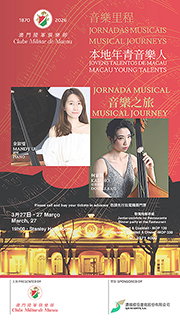 「音樂之旅」下周五演出 2026-03-19 03:30:00 【特訊】澳門陸軍俱樂部活動「音樂里程-本地年青音樂人」將於三月二十七日,星期五,下午七時在何鴻燊博士廳舉行。 音樂會主題為「音樂之旅」,演出者為余淑雯(鋼琴)及何家碧(低音提琴)。 音樂會的觀眾上限為六十人。 音樂會結束後,賓客可參加為此音樂會特設的晚宴,訂座上限為五十人。 訂座或購票詳情,可致電二八七一.四000。◇