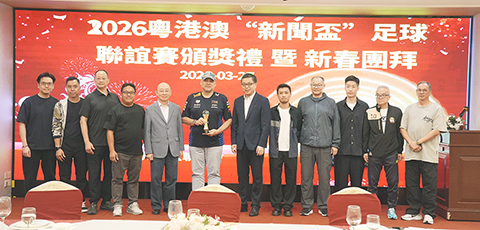 【本報消息】二0二六年穗港澳新聞界新春團拜暨“新聞盃”足球賽頒獎禮,昨日中午十二時三十分,假濠景酒店中餐廳舉行。中聯辦宣傳文體部部長萬速成,三地多位新聞界領導等嘉賓出席,並期望三地新聞工作者藉比賽以球會友,加強互相之間的交流,講起灣區故事。
