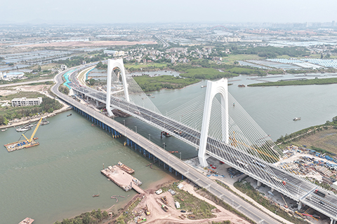 ◎ 這是三月卅一日拍攝的建成通車的平陸運河沙井欽江大橋(無人機照片)。當日,地處欽江入海口的平陸運河沙井欽江大橋建成通車。至此,平陸運河規劃的廿七座跨線橋樑中,已有廿五座橋樑建成通車,全線橋樑工程即將收官。(新華社記者周華 攝)