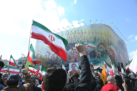 德黑蘭的悲與怒 2026-04-03 03:30:00 ◎ 四月一日,在伊朗首都德黑蘭革命廣場,民眾參加為伊朗伊斯蘭革命衛隊海軍司令坦格西里、伊朗武裝部隊總參謀長顧問賈姆希德.埃哈基及伊朗武裝部隊軍事人員舉行的告別儀式。(新華社記者 沙達提 攝)