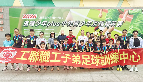 【特訊】「追峰少年Plus中韓青少年足球精英賽」4月4日至6日於廣州番禺木生緣體育中心舉行。工聯職工子弟足球訓練中心選派了U8、U12及U15三支梯隊出征。面對雲集韓國勁旅及粵港澳強隊(如佳聯元朗U10/U11)的高強度賽場,澳門小將表現脫穎而出,最終勇奪U8組冠軍,並取得U12組第七名及U15組第四名的佳績。