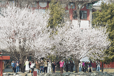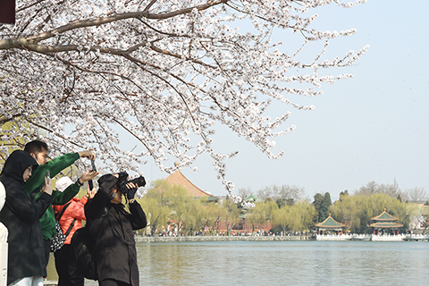 朱䴉之鄉 鳥影翩躚 又見京城花滿枝 又見京城花滿枝 2026-04-10 03:30:00 春回大地,暖風輕拂,北京街頭各種花卉次第開放,人們走出家門,賞花觀景,樂享和煦春光。(新華社記者 羅曉光 攝) ◎ 三月十六日在北京北海公園拍攝的景色。 ◎ 三月十六日,一名遊客在北京北海公園拍照留影。