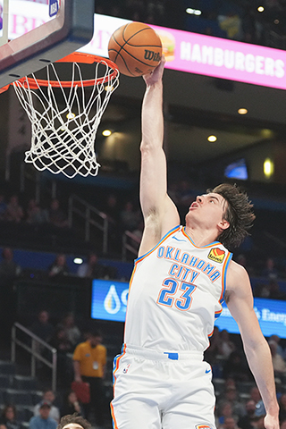 【又訊】NBA常規賽收官,衛冕的俄克拉何馬雷霆雖然在最後一場,以103:135不敵鳳凰城太陽,但仍然以64勝18負的戰績位列西岸榜首,連續兩年奪得常規賽冠軍。由法國中鋒、「外星人」雲班耶馬帶領的聖安東尼奧馬刺表現突飛猛進,以62勝20負排西岸次席,比上季多贏28場。西岸第三是有常規賽最有價值球員熱門人選祖傑在陣的丹佛金塊,他們以一波12連勝完結賽季,戰績為54勝28負。第四至第六名就依次為洛杉磯湖人、休斯敦火箭和明尼蘇達木狼。
