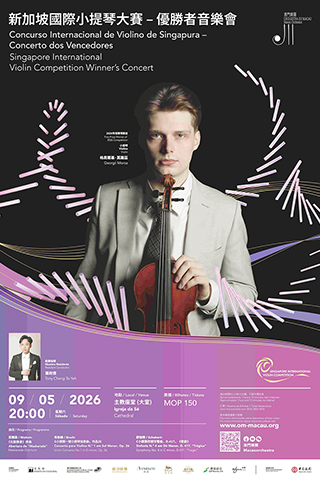 澳門樂團2025-26樂季節目之一,《新加坡國際小提琴大賽──優勝者音樂會》將於5月9日(周六)晚上8時在主教座堂舉行。音樂會由2026年新加坡國際小提琴大賽冠軍格奧爾基莫羅茲(Georgii Moroz)聯袂澳門樂團演出,展現國際級音樂藝術的魅力。門票現正於澳門售票網公開發售。