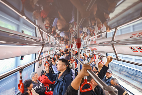 跨省開通寧馬市域(郊)鐵路正式運營 2026-04-23 03:30:00 ◎ 四月二十二日,連通江蘇省南京市與安徽省馬鞍山市的寧馬市域(郊)鐵路正式開通運營,南京與馬鞍山中心城區三十分鐘直達。該線路起自江蘇省南京市西善橋站,終至安徽省馬鞍山市太白站,途經南京市板橋新城、濱江新城,馬鞍山市花山區、雨山區、當塗縣,全長約五十四點二三公里,設站十六座。圖為乘客們從南京市乘坐列車前往馬鞍山市。(中新社記者泱波 攝)