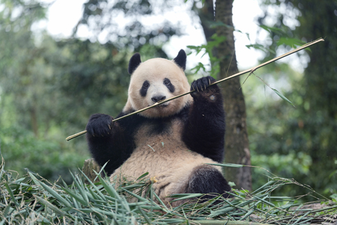 ◎ 四月二十二日,四川雅安,記者走進中國大熊貓保護研究中心雅安基地,探訪已從日本返回中國的大熊貓「香香」的日常生活。據了解,大熊貓「香香」於二0一七年六月十二日出生於日本東京上野動物園,是旅日大熊貓「比力」與「仙女」的女兒,深受中日兩國粉絲喜愛。二0二三年二月,「香香」結束近六年的旅日生涯返回祖國,目前生活在中國大熊貓保護研究中心雅安基地。圖為大熊貓「香香」。(中新社記者安源 攝)