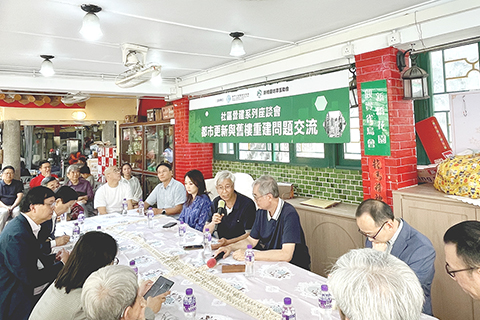 座談會昨日下午三時在新橋花園舉行,邀請到行政會委員、立法議員、坊會代表及學者參與。其中議員梁鴻細表示,坊間推動舊樓重建仍面臨各種困難,包括融資困難、業權分散等,期望政府能增加支援。尤其可考慮放寬重建樓宇容積率或建築高度,以新增空間抵銷部份建築費。