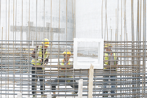 ◎ 四月廿五日,工人在泗洪縣歸仁鎮中央儲備糧宿遷直屬庫倉儲項目建設工地緊張施工。位於江蘇省宿遷市泗洪縣歸仁鎮的中央儲備糧宿遷直屬庫倉儲項目正在加緊建設,該項目計劃新建淺圓倉十八座、平房倉七棟,總倉容達廿五萬五千噸,採用現代化倉儲工藝與智能管控系統,項目建成後將顯著提升區域中央儲備糧倉儲、中轉與調控能力,提升糧食安全保障水平。(新華社發 許昌亮 攝)