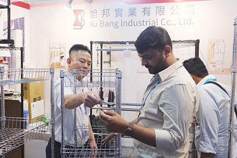 來自台灣彰化縣二林鎮的旭邦實業,擁有二千五百平方米廠房與約百名員工,主打鐵塑材質的家用層架及寵物收納用品。依託廣交會龐大的全球客源,該企業產品遠銷日本、澳大利亞等國家和地區。