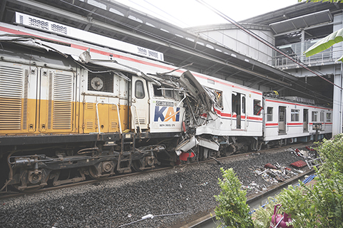 印尼列車相撞事故已致7死81傷 2026-04-29 03:30:00 ◎ 印度尼西亞國家鐵路公司四月二十八日說,二十七日晚發生在西爪哇省勿加泗市的列車相撞事故目前已造成七人死亡、八十一人受傷。圖為二十八日在印度尼西亞西爪哇省勿加泗市拍攝的事故現場。(新華社發 維里 攝)