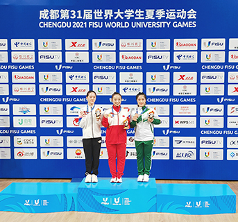 武術項目,黃心妍在女子南刀項目以9.506分的成績獲得銅牌,為代表團奪得本屆運動會首面獎牌。另一名運動員章睿哲則在男子南拳獲得9.316分,位列第七名。