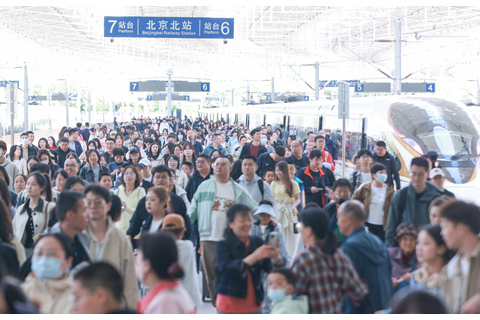 旅客在北京北站乘車 2025-10-21 03:30:00 ◎ 十月二十日,中國國家鐵路集團有限公司發佈消息顯示:二0二五年前三季度,全國鐵路發送旅客三十五點四億人次,同比增長百分之六,再創歷史同期新高,全國鐵路運輸安全平穩有序。圖為五月一日,旅客在北京北站乘車。( 中新社)