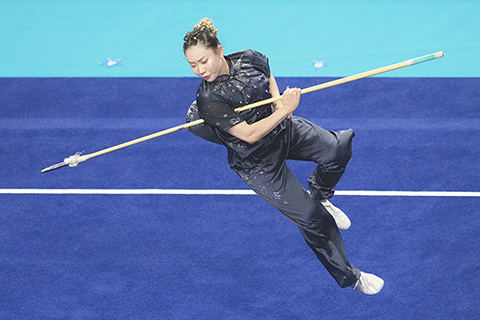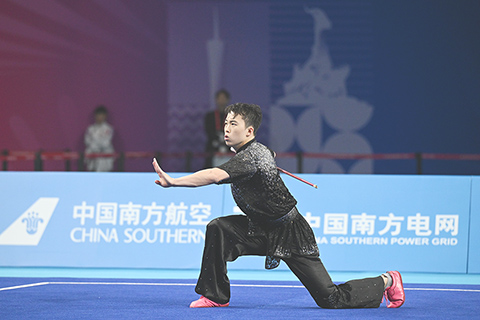 「有點小失誤,但整體很滿意。」就讀于香港中文大學的何彥政,近年在亞洲武術錦標賽、世界武術錦標賽等多項國際賽事中表現優異。首次參加全運會,他實現了賽前對自己的承諾,「難度分拿滿」。「內地選手實力強勁,很開心能和他們同場比賽,也想藉此機會多學習,爭取更大進步。」