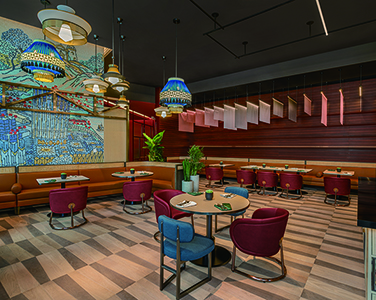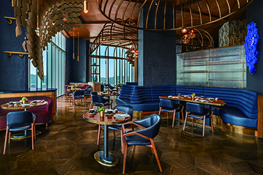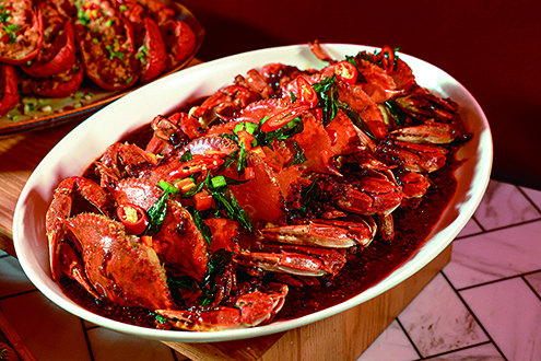 節慶菜單以寓意吉祥的新春撈起三文魚為亮點,融合三文魚、金黃薄脆和蔬菜絲,可親手「撈起」為新年掀起好運。菜單包括新加坡黑胡椒蟹、發財蠔豉大利及新春鴻運當頭烤乳豬。為增添歐陸風味體驗,餐廳特別設有廚師即席主理的現切伊比利亞5J火腿,甜品專區品嚐主題甜點,為這頓豐盛團圓聚餐畫上圓滿句號。