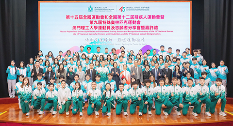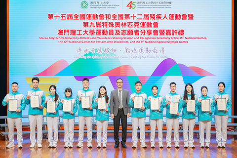 【特訊】為喜迎澳門理工大學45周年校慶,並慶祝第十五屆全國運動會及全國第十二屆殘疾人運動會暨第九屆特殊奧林匹克運動會成功舉行,澳理大日前舉辦全運會運動員及志願者分享會暨嘉許禮,以“傳承全運精神,點燃運動激情”為主題,凝聚澳理大師生、運動員和志願者,分享參與十五運會及殘特奧會的經驗和喜悅,同時感謝一眾師生教練員、運動員及志願者的積極拼搏、熱誠奉獻,氣氛喜悅動人。