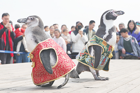 逛海南海口非遺市集 四隻溫帶洪氏環企鵝跟著飼養員登上明城牆 從「喊叫水」到自來水 中國西北農村女性擁抱用水自由 晉祠難老泉水位 再創復流以來新高 高雄內門宋江陣開幕 展現陣頭民俗風采 長春航空文化周開幕 空天科普走近大眾 四隻溫帶洪氏環企鵝跟著飼養員登上明城牆 2026-03-23 03:30:00 ◎ 三月廿二日,南京海底世界人工繁育的四隻溫帶洪氏環企鵝跟著飼養員登上明城牆,在春意盎然的時節與市民和遊客見面。據了解,溫帶洪氏環企鵝適宜生活的溫度在攝氏十五度至攝氏廿五度之間,這四隻企鵝會在每年春天和秋天溫度適宜的時候隨著飼養員外出「兜風」。(中新社記者 泱波 攝)