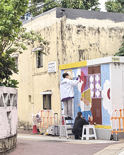 澳門街頭的垃圾站(包括密封式垃圾站與壓縮式垃圾桶),繪上美麗的圖畫;而澳電設立於街上的變電房,外牆同樣七彩繽紛!
