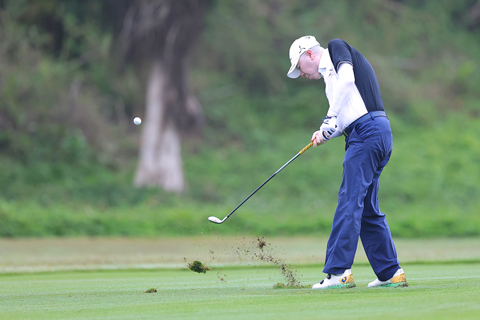 ◎ 著名導演馮小剛日前參加明星配對賽。世界巡迴賽海南高爾夫精英賽在海口開賽。本屆比賽總獎金二百五十五萬美元,吸引了來自二十七個國家和地區的一百二十名頂尖球員及一百二十名業餘球員參賽。(中新社記者 駱雲飛 攝)