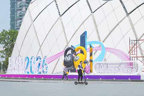 第六屆消博會主會場場館搭建工作有序進行 2026-04-10 03:30:00 ◎ 四月九日,海南海口,第六屆中國國際消費品博覽會主會場場館搭建工作正有序推進。本屆消博會以「開放引領全球消費,創新驅動美好生活」為主題,將於四月十三日至十八日在海南省舉辦。圖為第六屆中國國際消費品博覽會主會場入口處的戶外主題景觀。(中新社記者 駱雲飛 攝)