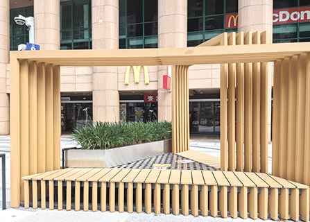 近日在區華利前地巴士站下車,眼前一亮:周邊種植了花花草草,並搭建了一個有上蓋的長凳。
