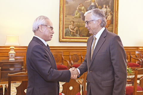 【特訊】訪葡的行政長官岑浩輝於當地時間二十一日中午,在里斯本拜會葡萄牙議會議長阿吉亞爾-布蘭科(Jose Pedro Aguiar-Branco),雙方就加強澳葡立法機關的友好交往、澳門助力中葡關係持續深化等議題交換意見。